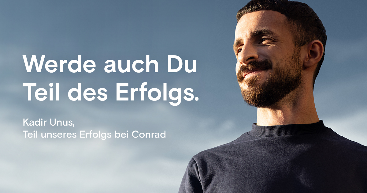 Bei Conrad Electronic fördern wir aktiv die Vielfalt und Gleichstellung aller Mitarbeitenden. Unsere Stellen stehen allen qualifizierten Bewerbenden offen, ungeachtet ihres Geschlechts, ihrer Nationalität, ethnischen oder sozialen Herkunft, Religion oder Weltanschauung, einer Behinderung, ihres Alters oder ihrer sexuellen Identität.